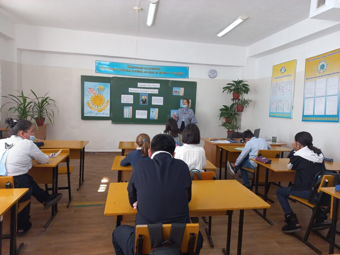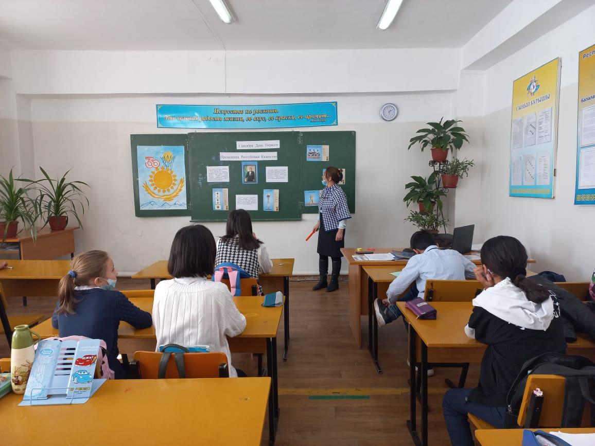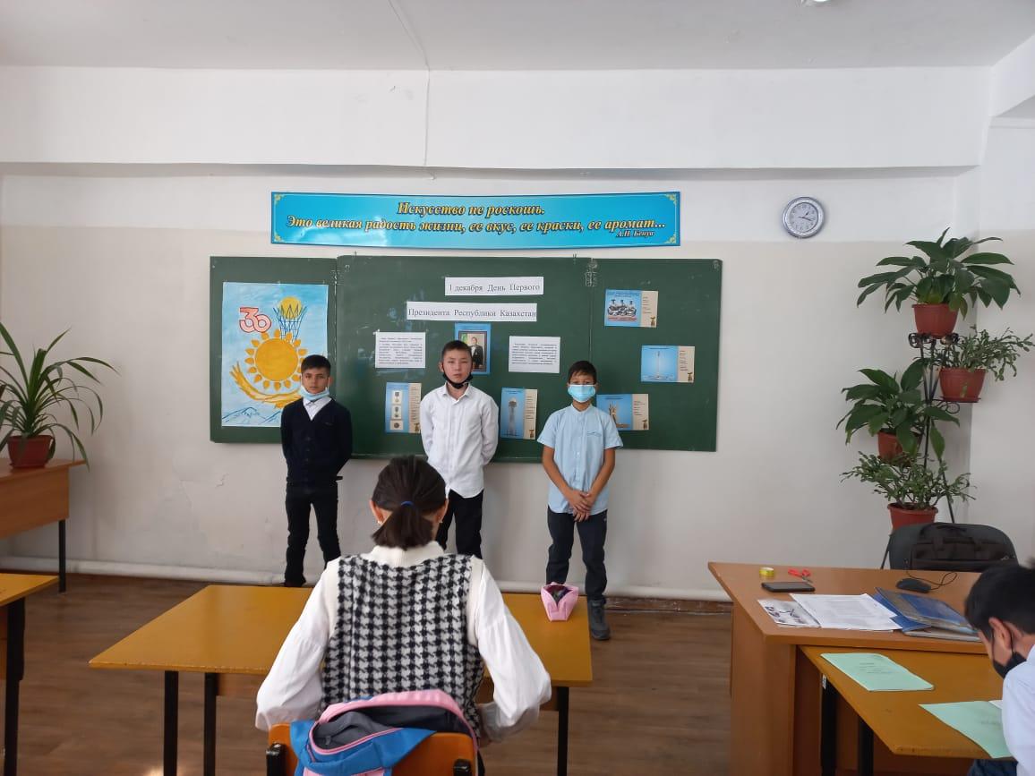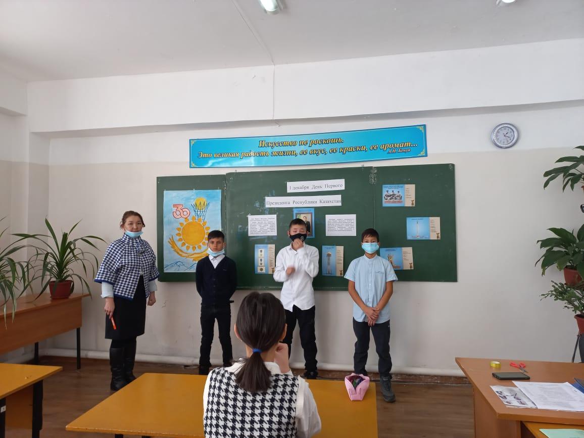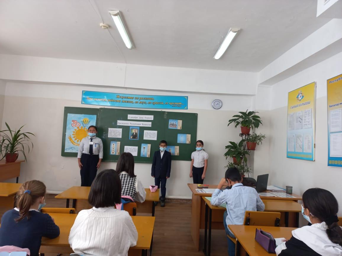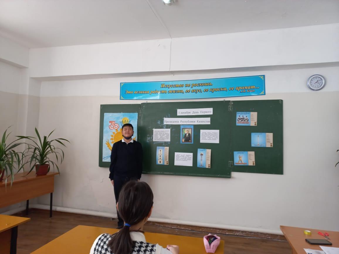 6 "А" сыныбының сынып жетекшісі А.Кусманова 1 желтоқсан- Қазақстан Республикасының Тұңғыш Президенті күніне орай сынып сағатын ұйымдастырды.