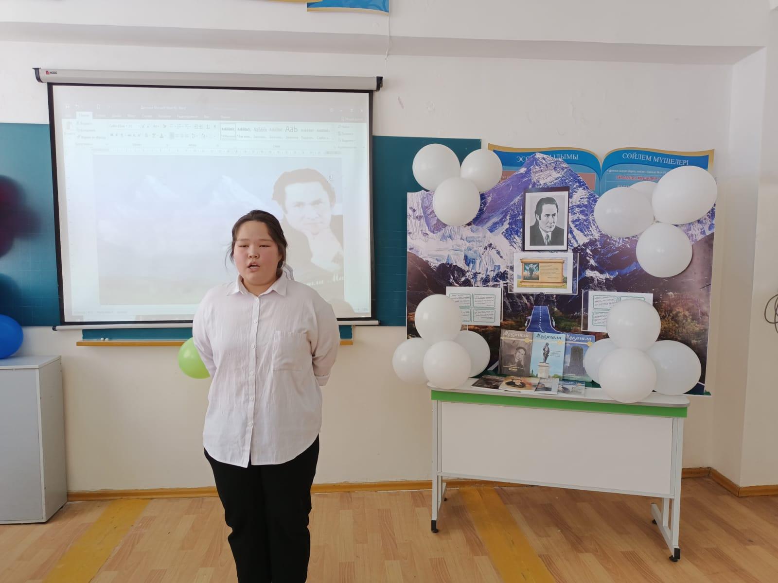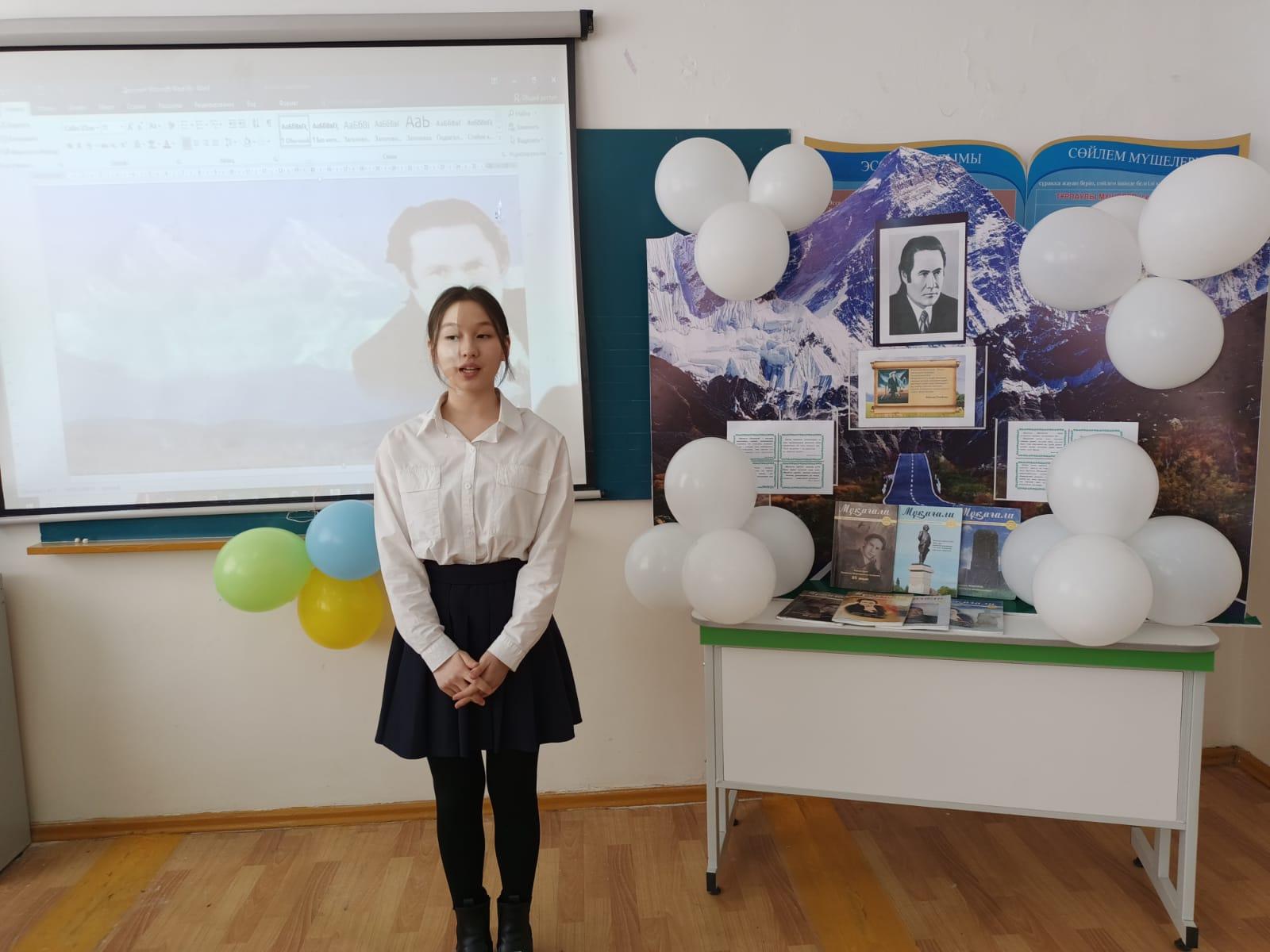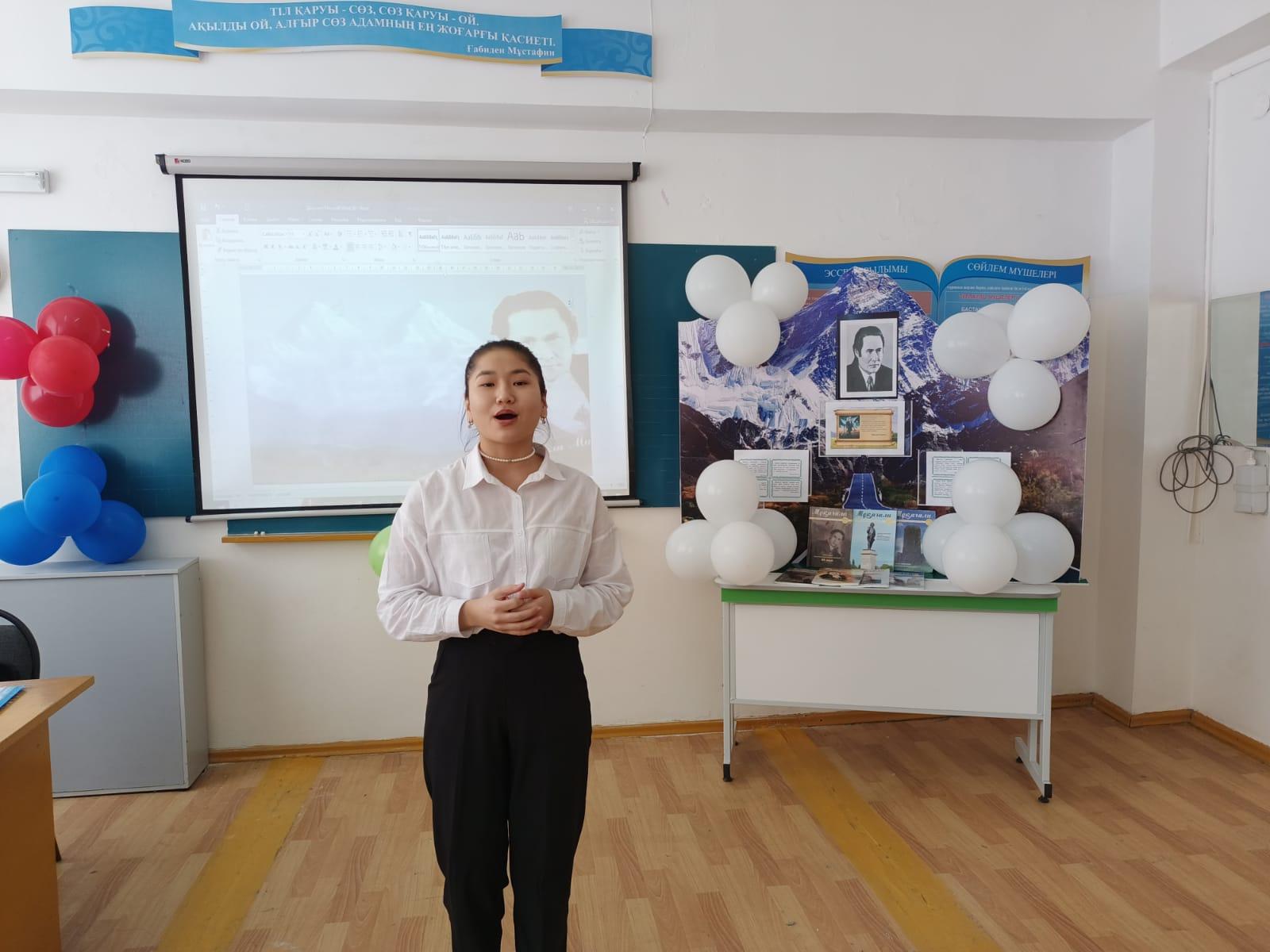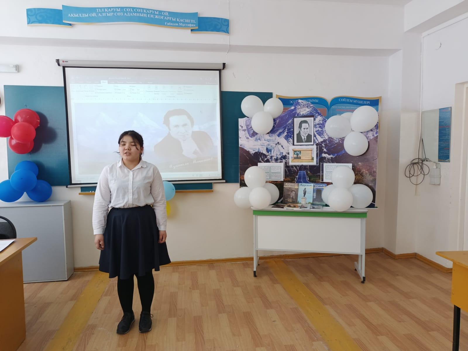 Мақсаты: Қазақ поэзиясының мұзбалағы атанған ақынның өмірі, шығармашылығымен таныстыру, ақынның поэзия құдіреті мен әндерін таныту. Ақын өлеңдері арқылы оқушылардың Отанға, халқына, тілге деген сүйіспеншілік сезімдерін ояту, отаншылдыққа тәрбиелеу. Ұйымдастырушы: "Заңғар" әдістемелік бірлестік мүшелері, музыка пәнінің мұғалімі Үшкемпирова Қ.Е.