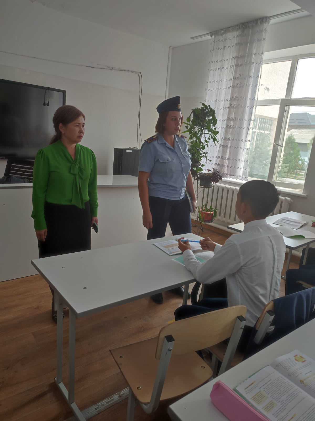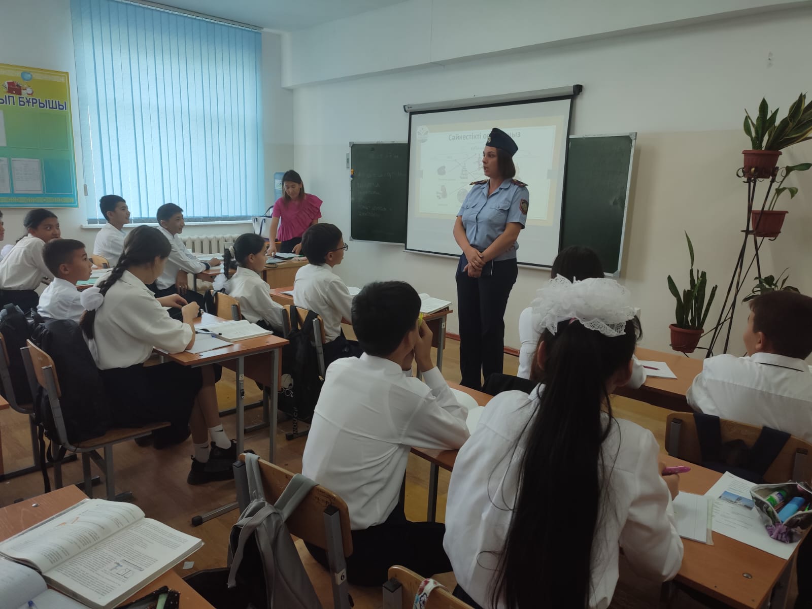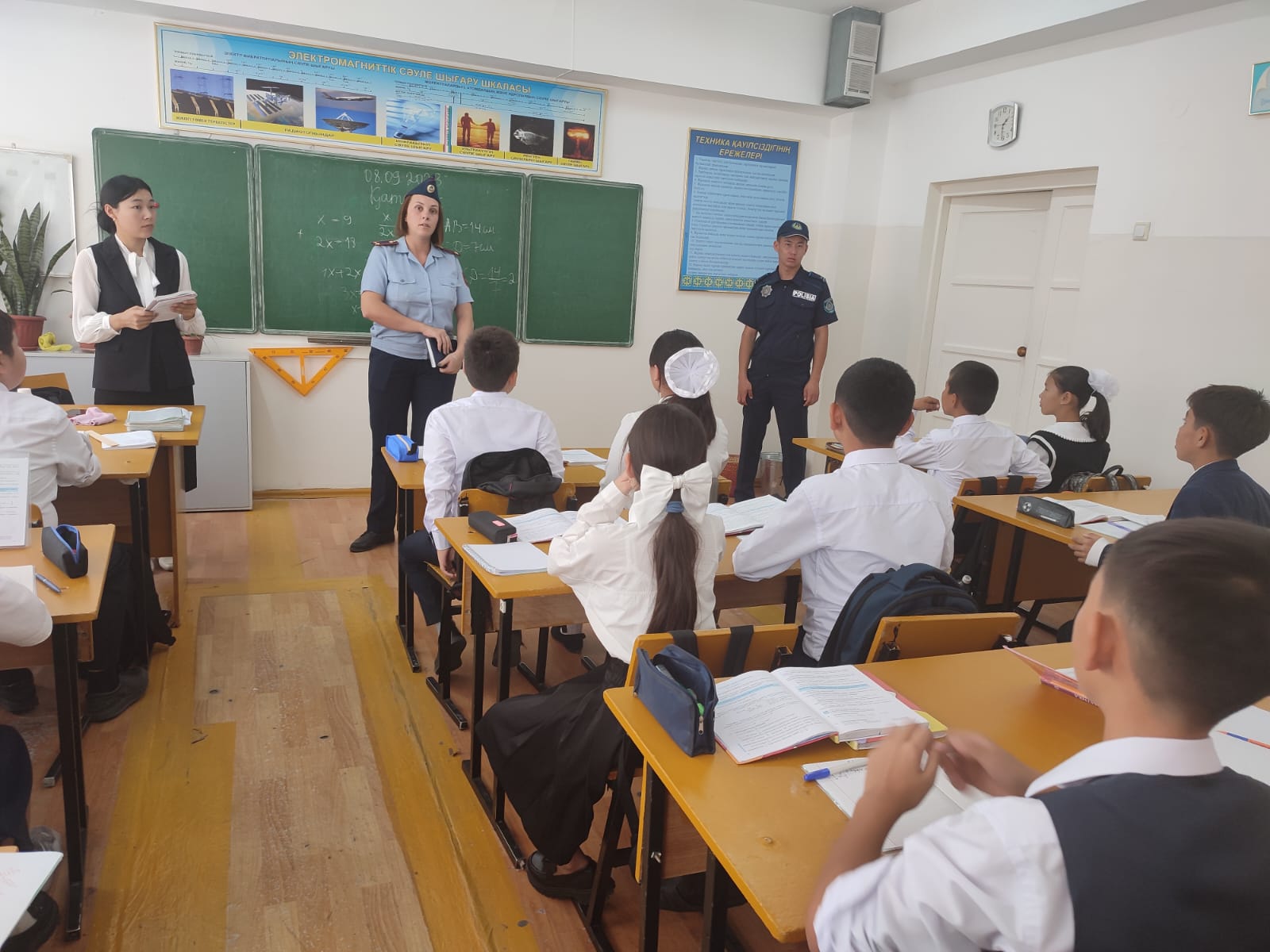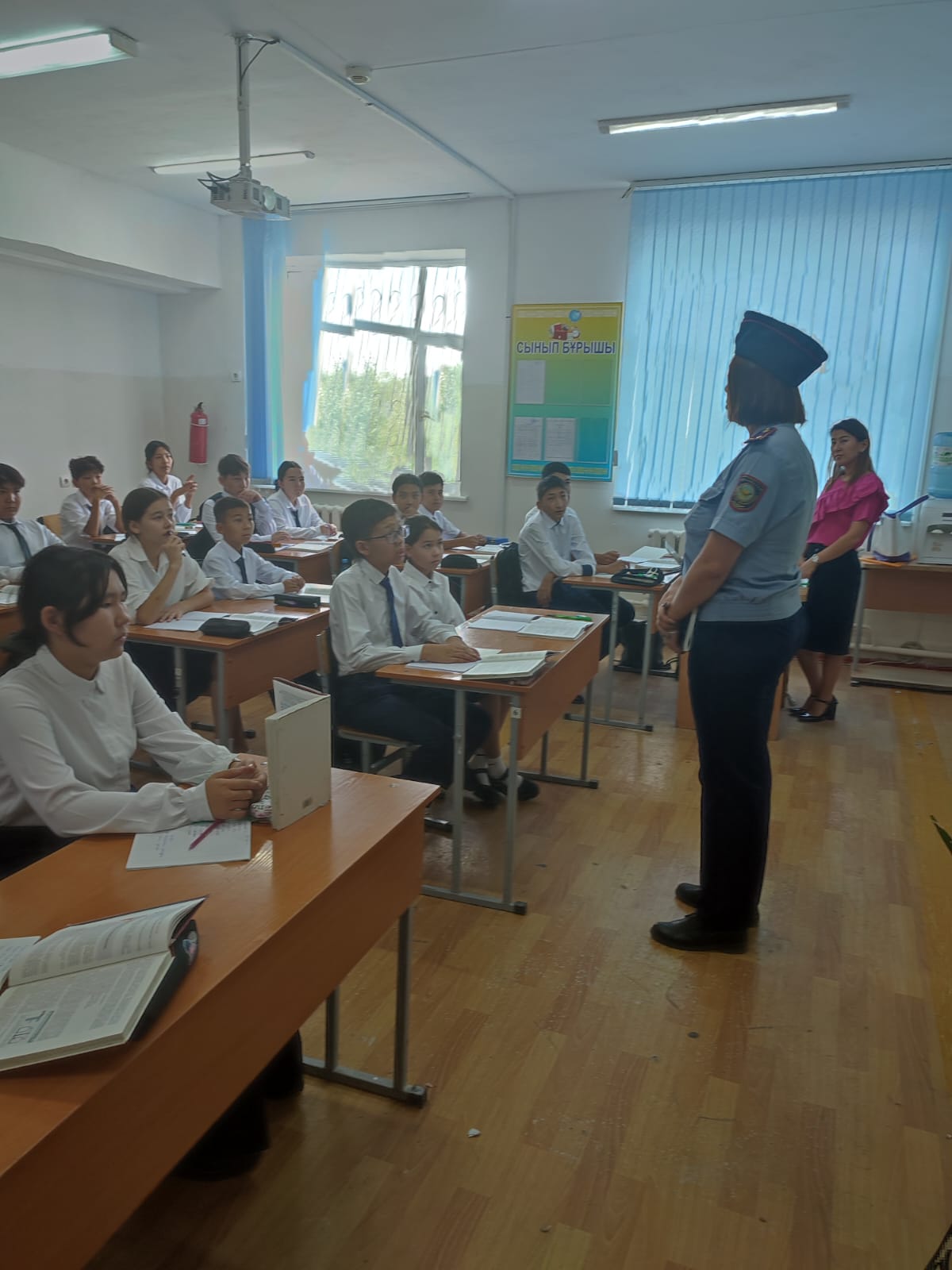 ҚАЗАҚСТАН РЕСПУБЛИКАСЫ ІШКІ ІСТЕР МИНИСТРЛІГІ АЛМАТЫ ОБЛЫСЫНЫҢ ПОЛИЦИЯ ДЕПАРТАМЕНТІ ІЛЕ АУДАНЫНЫҢ ПОЛИЦИЯ БАСҚАРМАСЫ" МЕМЛЕКЕТТІК МЕКЕМЕСІнің ювиналдық полиция тобының полиция лейтенанты Иванова Юля Станиславовна құқықбұзушылықтың алдын-алу мақсатында мектеп оқушыларымен түсіндіру жұмыстарын жүргізді.