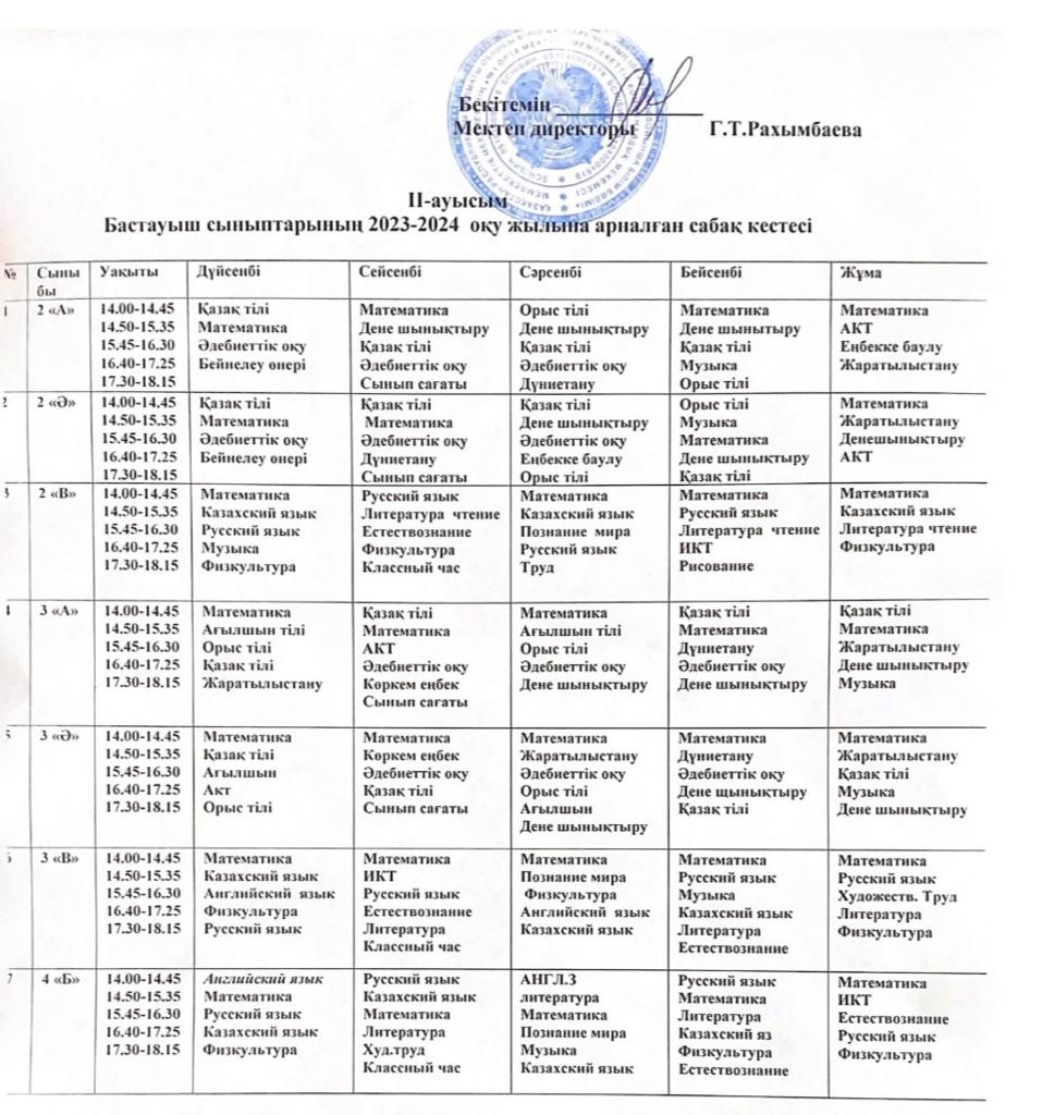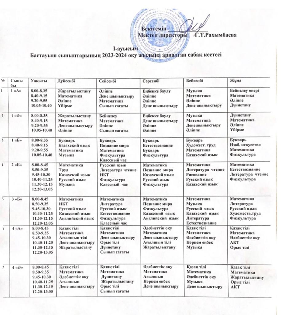 2023-2024 оқу жылының сабақ кестесі » Средняя школа №13