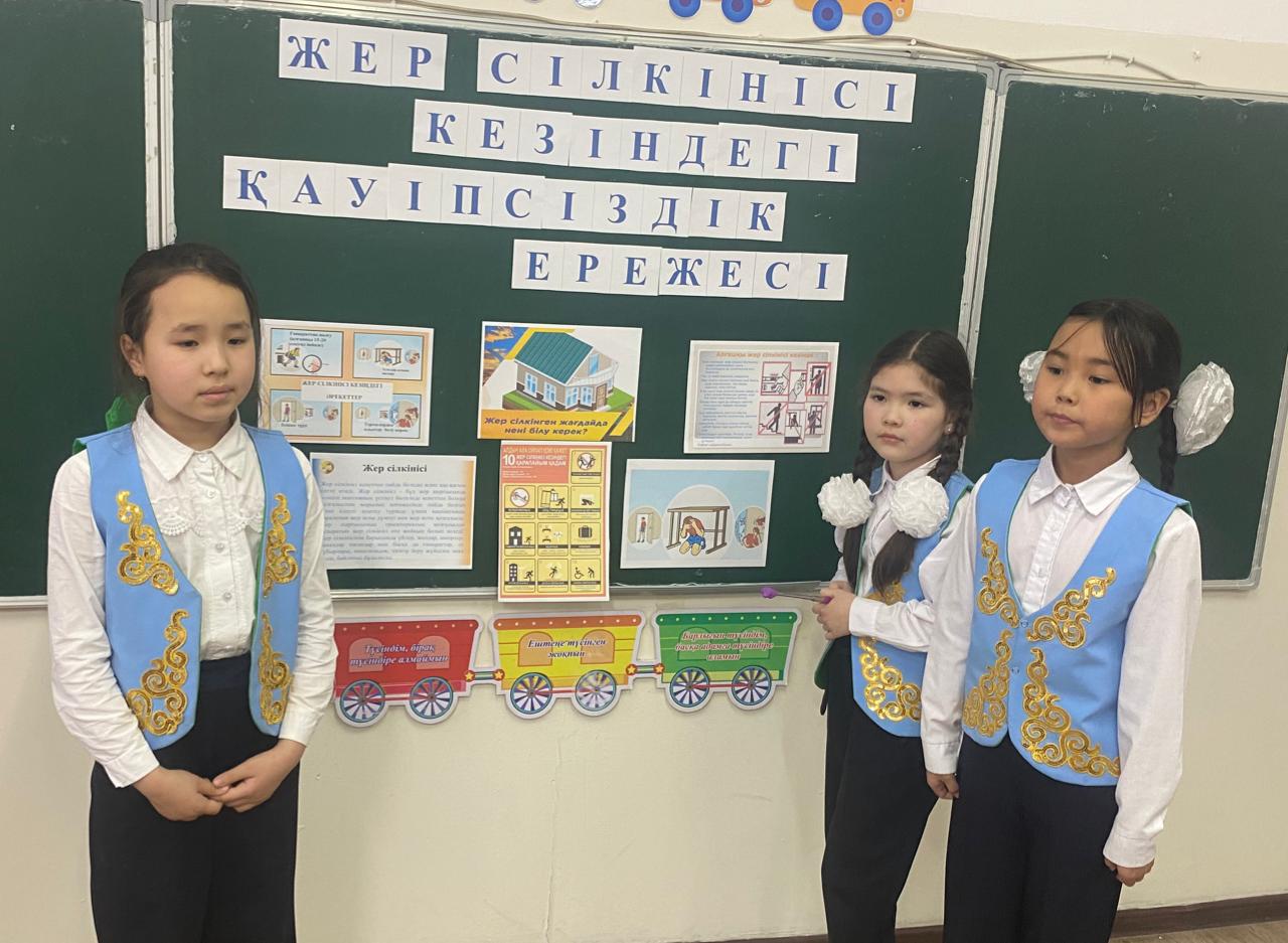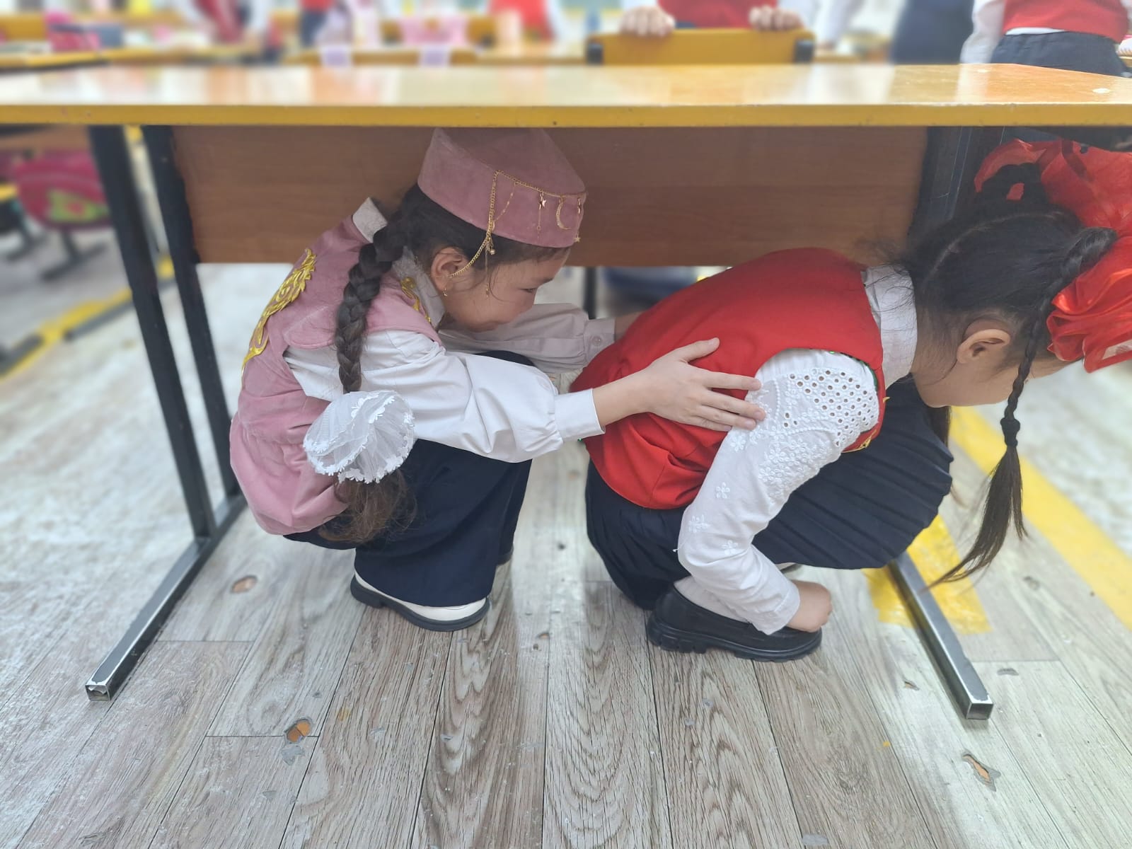 Бастауыш сынып мұғалімдері оқушыларға жер сілкінісі болған жағдайда қандай әрекеттер жасау керек екенін түсіндіріп, қауіпсіздік шараларын түсіндірді