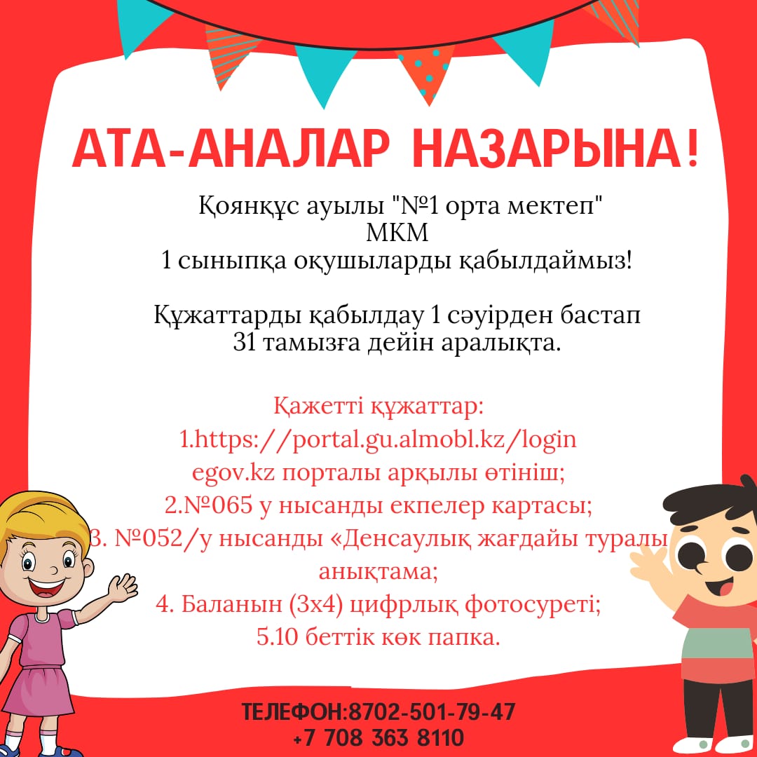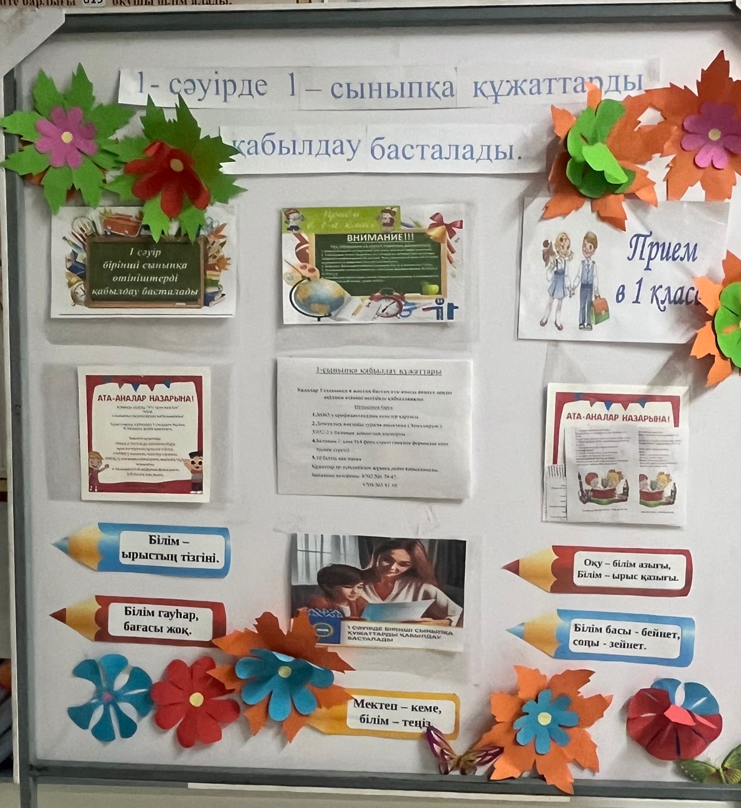 2024-2025 оқу жылына 1 сыныпқа құжаттар қабылдау жұмыстары жүргізілдуе.Мемлекеттік  өз-өзіне қызмет көрсету бұрышына келіп ата-аналар өтініш қалдыра алады.