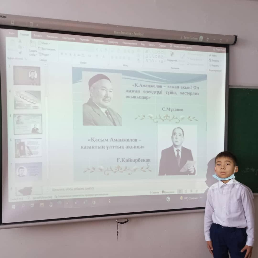 Алматы облысы Іле ауданы Қоянқұс ауылы 1 орта мектебінің мектеп кітапханашылары А.Елбаева мен А. Абижанова ақын Қасым Аманжоловтың 110 жылдығына орай " Өмір шындығын жырлаған ақын" тақырыбында ақын өмірі мен шығармашылығына 5,6 сынып оқушыларына видеосаяхат ұйымдастырды. 5 "А" сыныбының сынып жетекшісі Тынбаева Б.К.