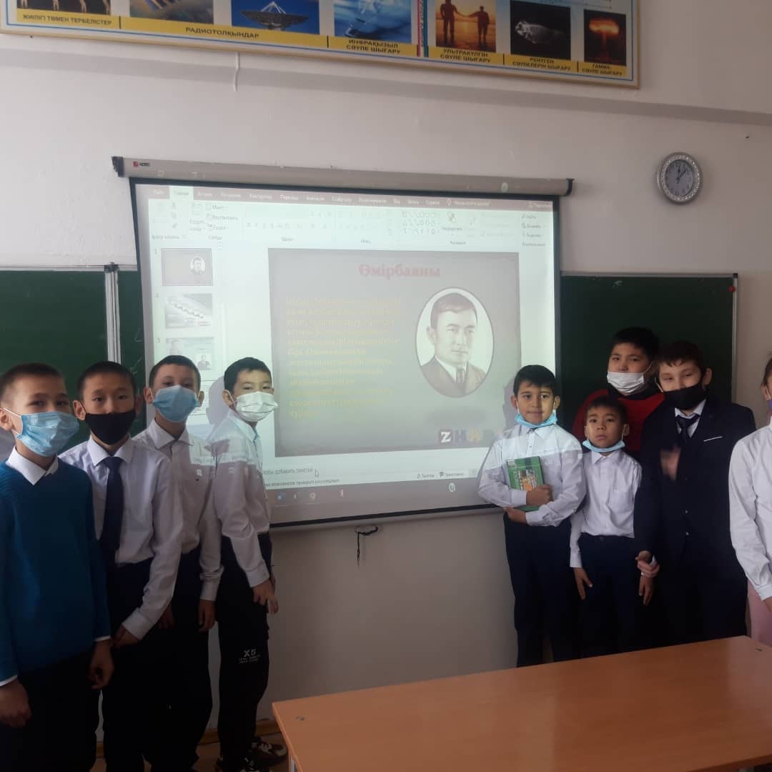 Алматы облысы Іле ауданы Қоянқұс ауылы 1 орта мектебінің мектеп кітапханашылары А.Елбаева мен А. Абижанова ақын Қасым Аманжоловтың 110 жылдығына орай