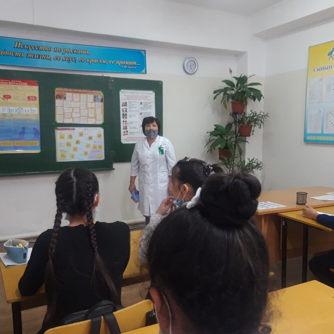 Алматы облысы Іле ауданы Қоянқұс ауылы 1 орта мектебінің медбикесіР. Солтанбекова 6 "В" сыныбында 1 желтоқсан - Дүниежүзілік СПИДке қарсы күрес күніне орай "Что такое ВИЧ-инфекция и что такое СПИД?" тақырыбында түсініктеме жұмыстарын жүргізді. Ұйымдастырған 6"В" сыныбының сынып жетекшісі Кусманова А.