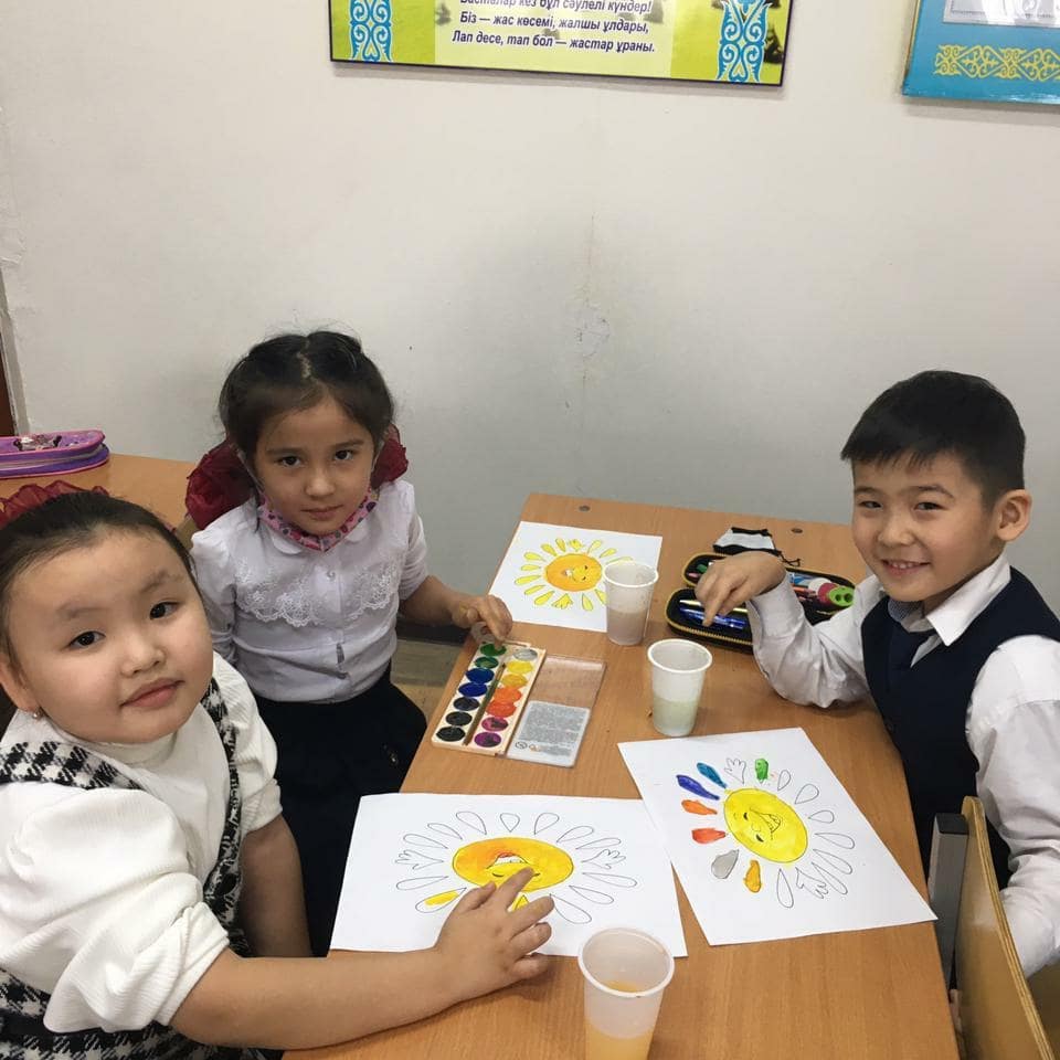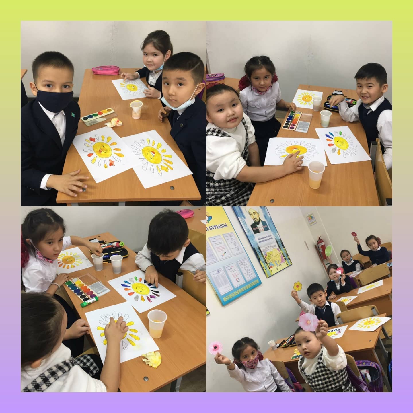 Іле ауданы, Коянкус ауылы "№1 орта мектеп" МКМ бойынша психологиялық денсаулық айлыгы аясында 1-сынып оқушылары арасында үсақ қол моторикасын, ойлау қабілетін дамытуға арналған жұмыстар жүргізілді.🎨Среди учащихся 1 "А" и 1 "Ә" классов был проведён урок пальчикового рисования, целью которого было развитие мелкой моторики ребёнка. Делимся моментами с этого урока🎨