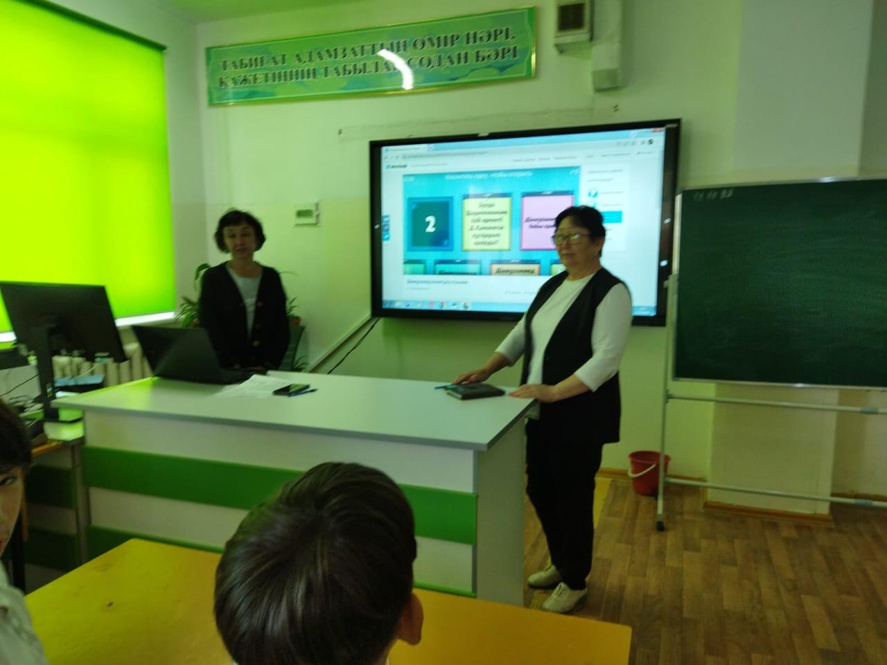 Ел мақтанышының өмірбаяны, еңбекқорлығы, қарапайымдылығы, елге сіңген елеулі еңбек жолдары таныстырылып, викториналық сұрақтар беріліп білімпаз оқушы анықталды. Білімпаз оқушы Рахымова Ғазиза атанды. Мектеп кітапханашылары А.Н.Абижанова мен А.К. Елбаева сұхбат жүргізді.