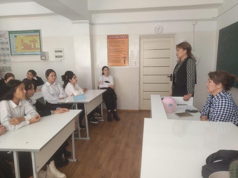 Алматы облысы Іле ауданы Қоянқұс ауылы 1 орта мектептің мектеп психологы Ж. Батырбаевна мен қыздар кеңесінің төрайымы Г. Абдрашева "Қыз қылығымен көрікті" тақырыбында 7-11 сынып қыздарына жиналыс өткізді. Мақсаты: қыз балаға адамгершілік, адалдық, іс-қимыл, жүріс-тұрыс дағдысы, қыз сымбаты туралы жан-жақты мағлұмат беру арқылы, қыз балалардың бойына рухани-адамгершілік, әдептілік, сыпайылық, тиянақтылық, тазалық қасиеттерді дамыту, жеке бас гигиенасын сақтауға, әдепсіздік жолға түспеуге тәрбиелеу. Іс -шараға 82 -қыз бала, 6 сынып жетекші қамтылды.