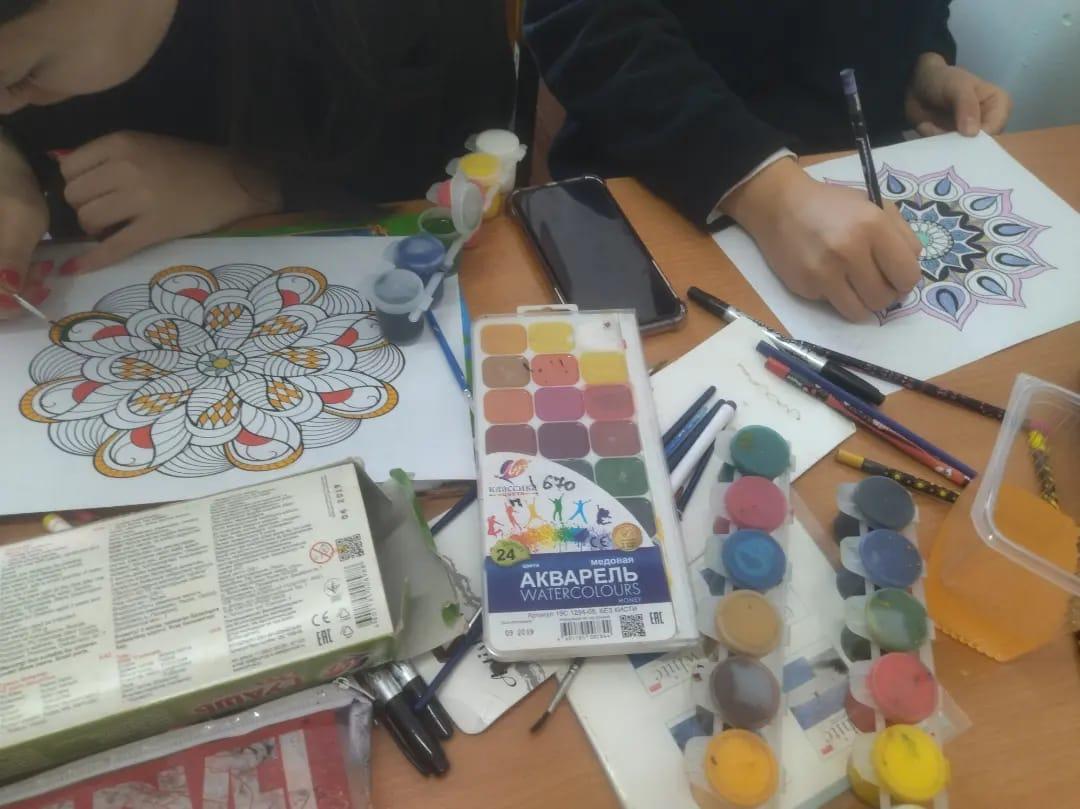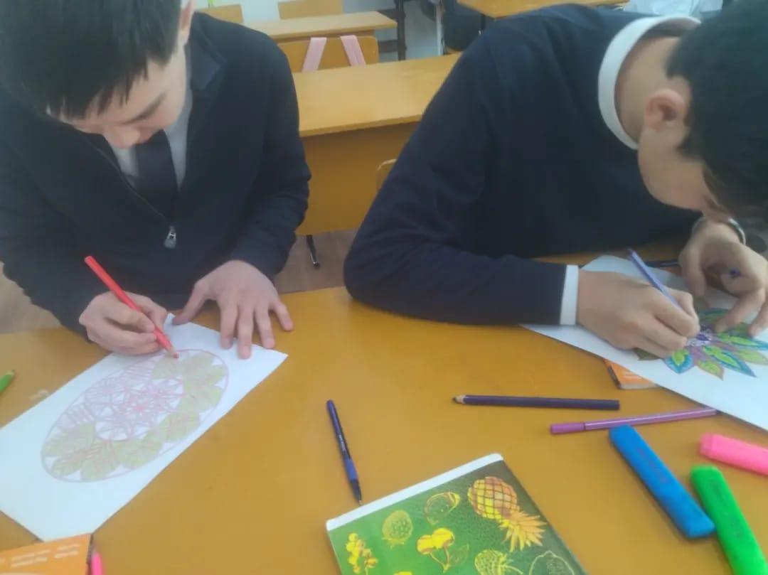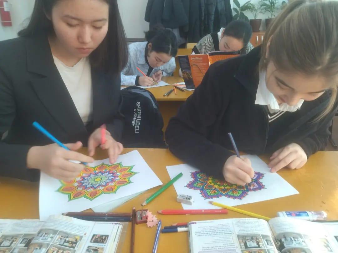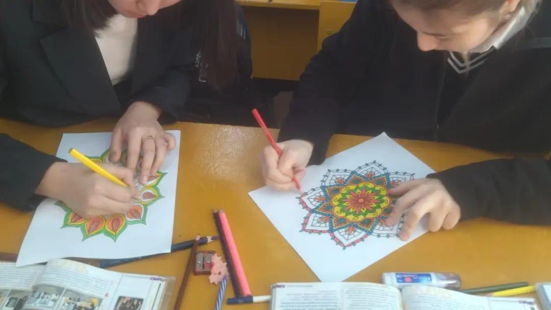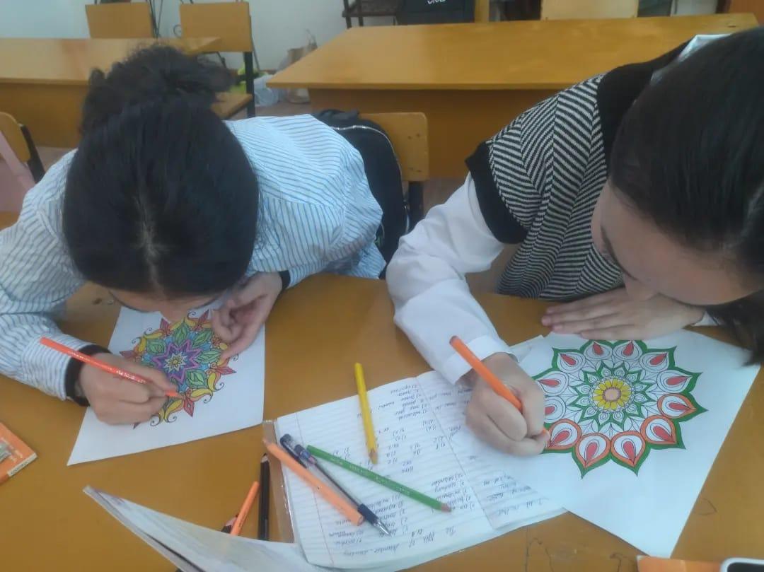 Алматы облысы Іле ауданы Қоянқұс ауылы №1 орта мектебінде "Психологиялық денсаулық" онкүндігі аясында мектеп психологы Конгратбаева Жайна Батырбаевна 11- сынып оқушыларының зейін койып, логикалық ойлау қабілетін дамыту мақсатында "Мандала" терапиясын өткізді. Нәтижесінде оқушылар өздерінің жасаған жұмыстарын көріп қуанышты сезімде болды.