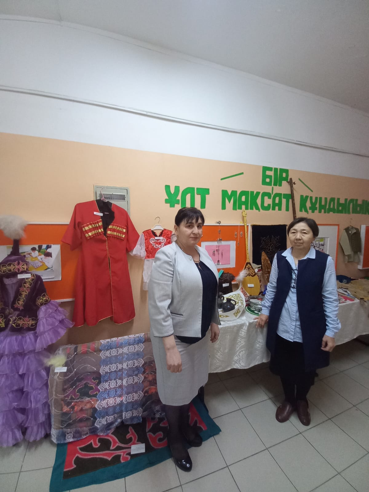Мақсаты:  Қазақстандықтардың  бірегейлі  негізгі  арқауы - еліміздегі барлық ұлт пен ұлысты бір шаңырақ астында тату- тәтті  өмір сүріп, Тәуелсіз Қазақстанның барлық  азаматтарының құрмет  білдіретін  күні. Қазақстандағы этностардың мәдениетін насихаттау. Көрмеге мектебіміздің сынып жетекшілері мен оқушылары белсене қатысты. Бастауыш сынып мұғалімдері: З.Тілеукенқызы, Г.Жылкайдарова, А.Умурзакова. Сынып жетекшілер: Ж.Бейсенова, М.Мұқаш, Р.Абдуллаева,