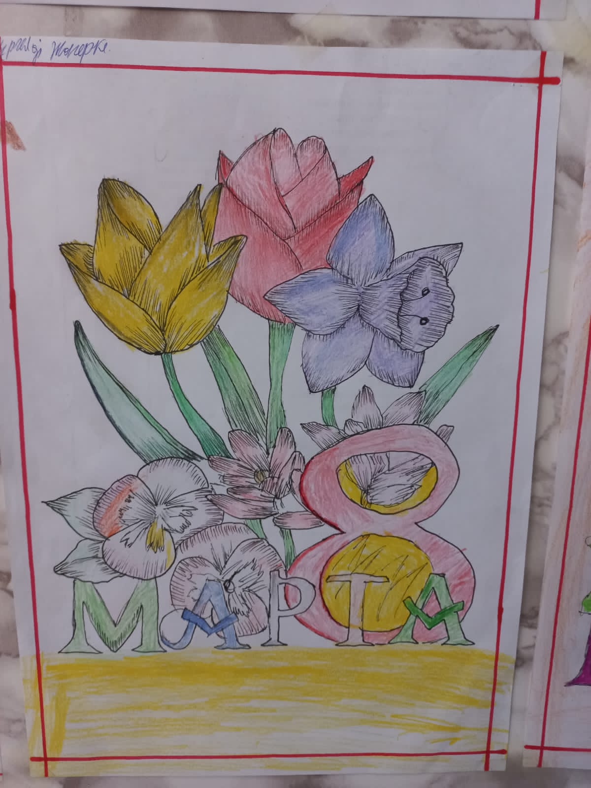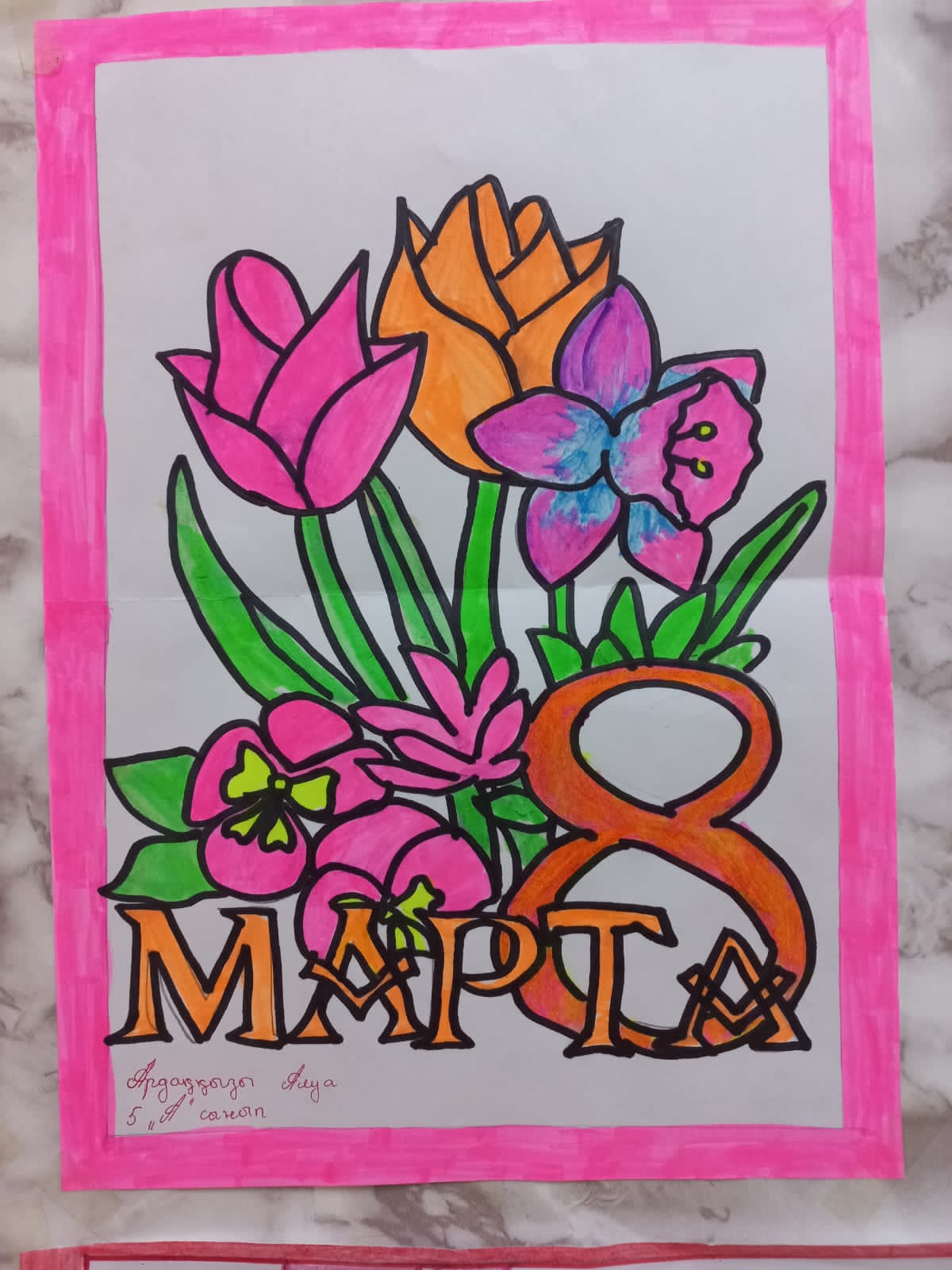 Алматы облысы Іле ауданы Қоянқұс ауылы 1 орта мектебінде көркем еңбек пәнінің мұғалімдері Б.Тынбаева мен А. Кусманова 8 наурыз Халықаралық әйелдер күні қарсаңында 5-7 сыныптар оқушыларының арасында "Өмір сыйлаған АНА" тақырыбында сурет көрмесін ұйымдастырды. Мақсаты: Балалардың анаға деген құрметін арттыру, ана өмірдің тірегі екенін ұғындыру.