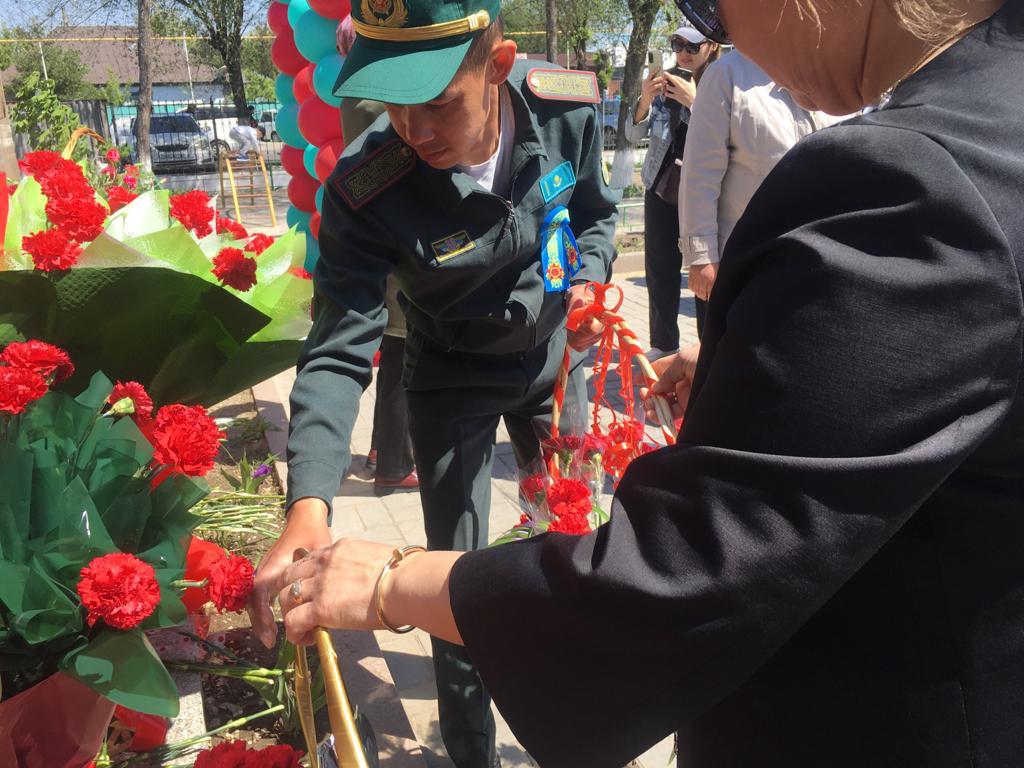 Байсерке округінде 9 мамыр Ұлы Жеңістің 78 жылдығы қарсаңында ұйымдастырылған іс-шараға қатыстып,ескерткішке гүл шоқтарын қойды.