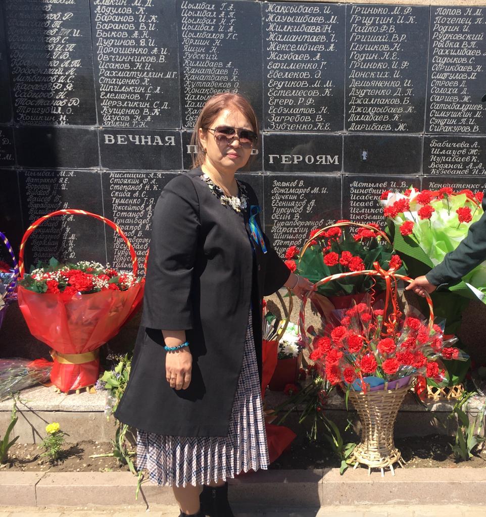 Ағылшын тілі пәні мұғалімі Н.С.Турсынкожаева Байсерке округінде 9 мамыр Ұлы Жеңістің 78 жылдығы қарсаңында ұйымдастырылған іс-шараға қатыстып,ескерткішке гүл шоқтарын қойды.