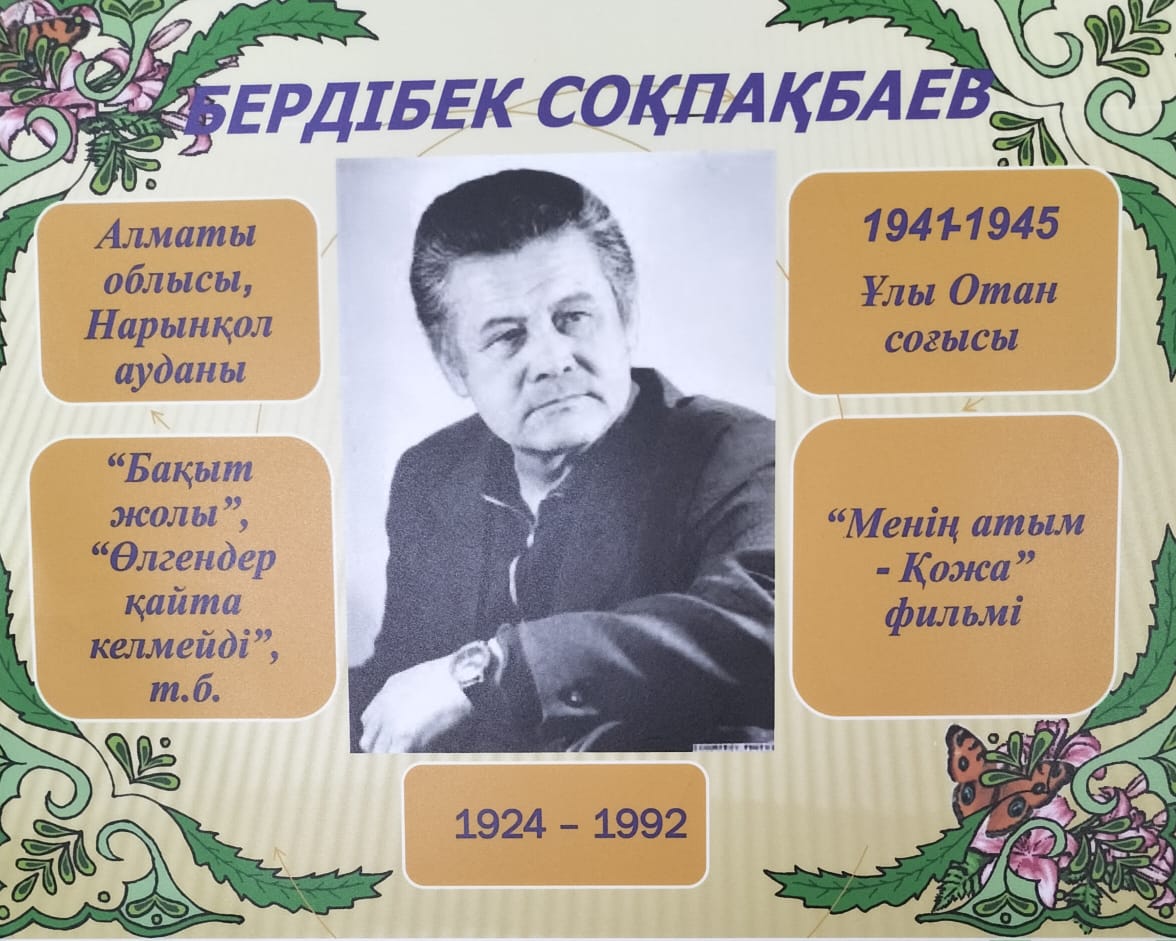 « Оқуға құштар мектеп » жобасы аясында №1 орта мектеп кітапханасында «Бердібек Соқпақбаев –балалар әдебиетінің атасы » тақырыбында кітап көрмесі және жазушының «Балалық шаққа саяхат» шығармасын оқыған 8 а сынып оқушыларымен шығарма жайлы ой пікір алысу болды. Іс-шара мақсаты қазақ балалар әдебиетінің классигі Бердібек Соқпақбаевтың өмірі мен шығармашылығын таныстыра отырып, оқушының кітап оқуға деген қызығушылығын ояту. Елжандылыққа тәрбиелеу.