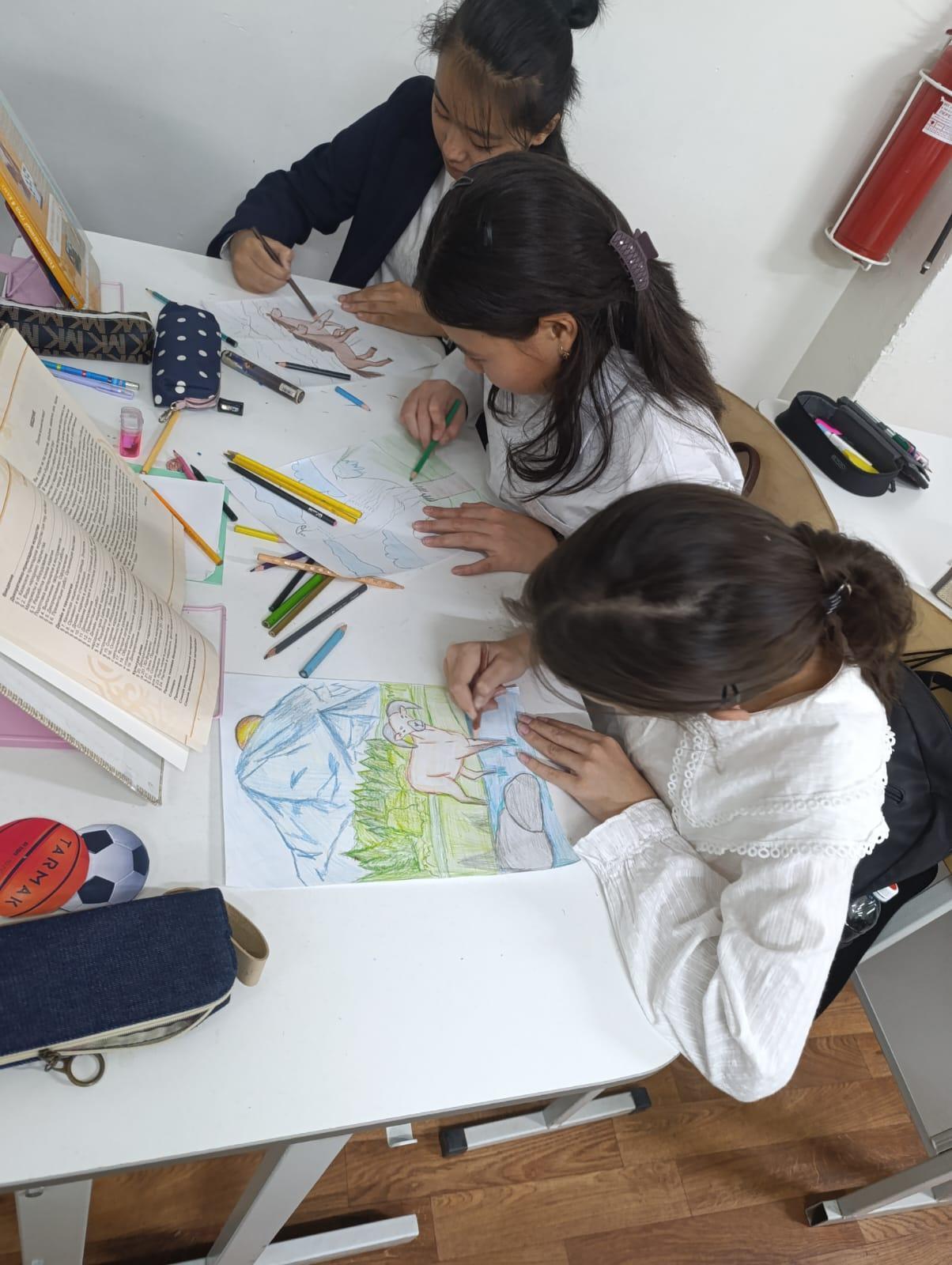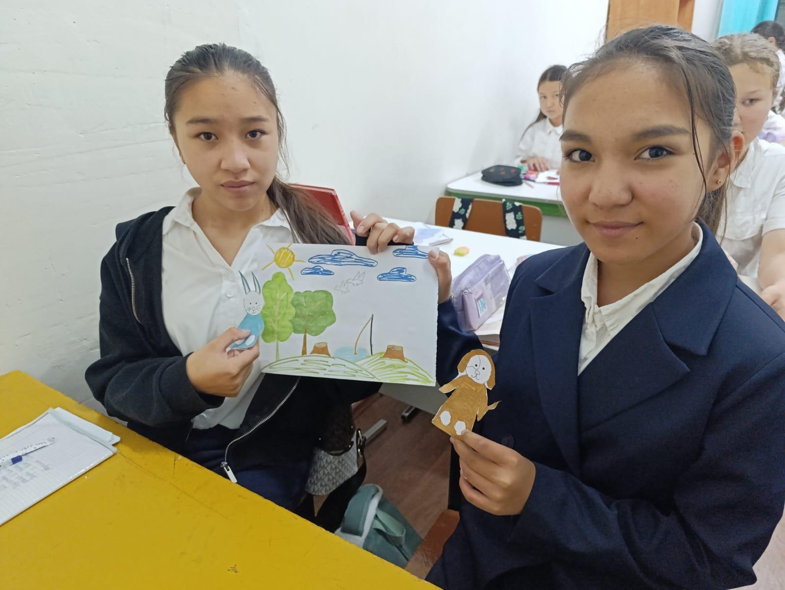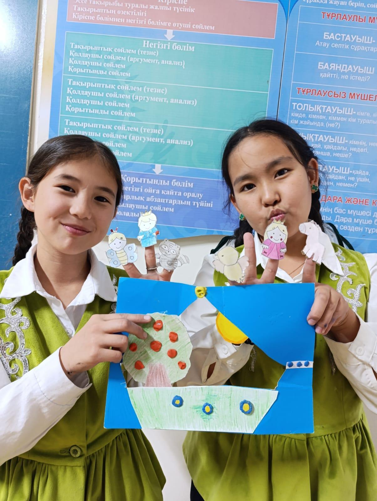 Алматы облысы Алатау қаласы Қоянқұс шағын ауданы №1 орта мектебінің көркем еңбек пәнінің мұғалімі Б.Тынбаева 6 сыныптарда Анимация. Қозғалатын элементтер (ермексазды анимация, көлеңкелі театр, саусақты және таяқшалы қуыршақтар) тақырыбы сабағында білім алушылар ертегідегі сүйікті кейіпкерлерінен көрініс ұйымдастырды.