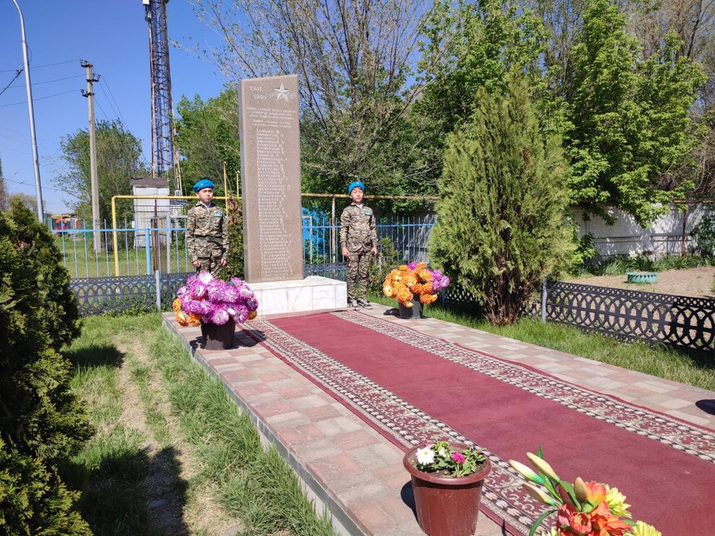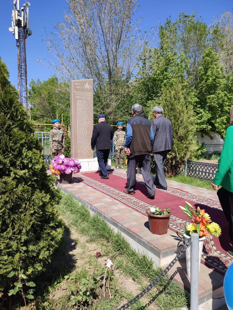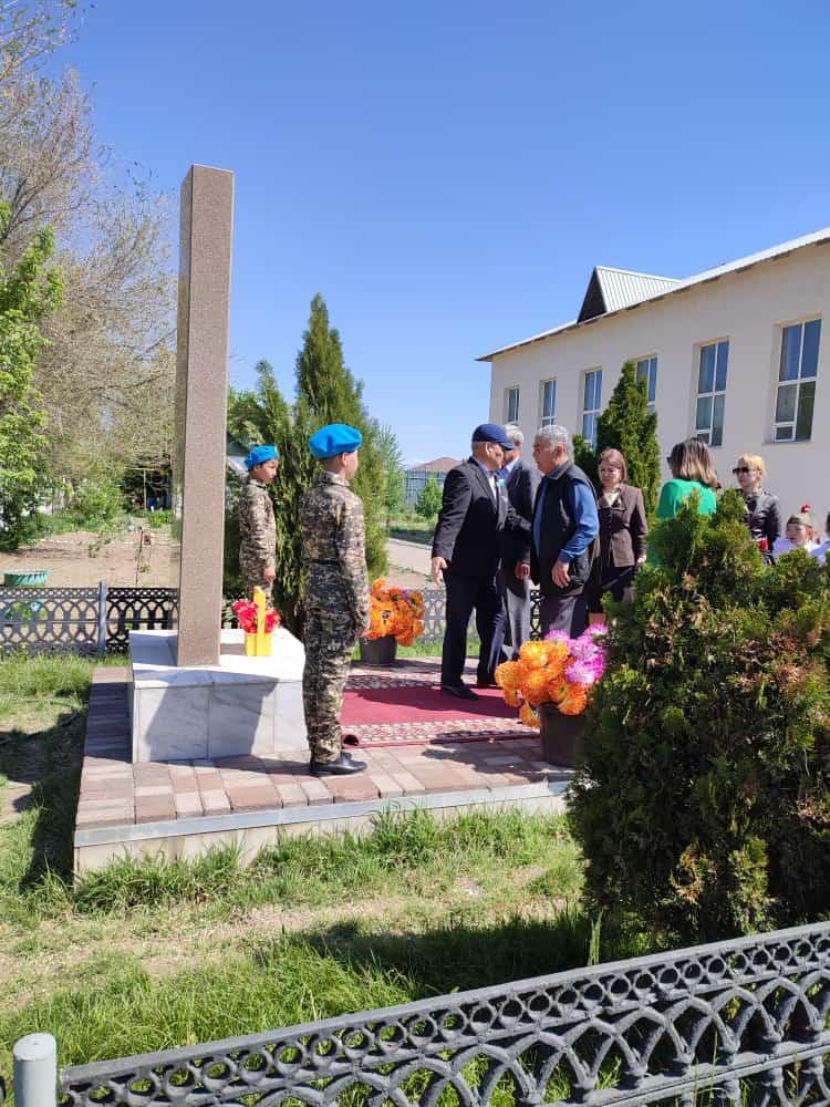 06 мамыр 2023 0 1 2 3 4 5 Біздің тарихымыз Мектеп алаңында Ұлы Отан Соғысы ардагерлерінің есімдері жазылған ескерткіш орналасқан.Атаулы мереке қарсаңында ауыл ақсақалдары мен мектеп мұғалімдері және оқушылары құрмет көрсетіп ескерткішке гүл шоқтарын қояды.