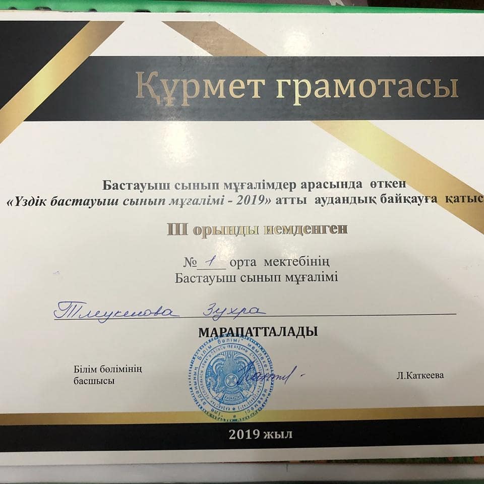 13 сәуір 2020 0 1 2 3 4 5 Мектеп туралы Алматы облысы Іле ауданы Қоянқұс ауылы 1орта мектебінің бастауыш сынып мұғалімі Тілеукенқызы Зухра аудандық "Бастауыш сынып мұғалімі" байқауында ІІІорын иеленді.Құттықтаймыз!