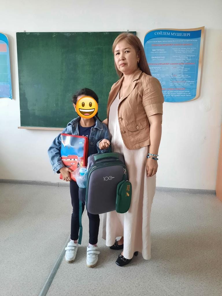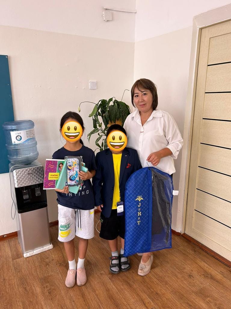 Білім бөлімінен және демеушілер тарапынан аз қамтылған және жетім, көп балалы отбасынан шыққан балаларға мектеп формасымен кеңсе тауарлары мен сөмке және мектепке қажетті заттармен көмек көрсетілді.