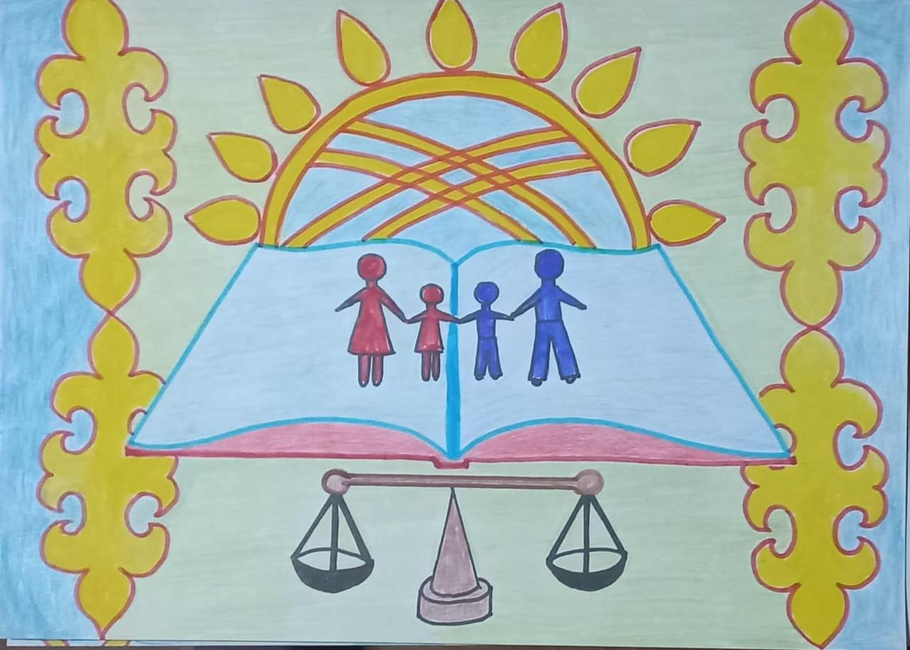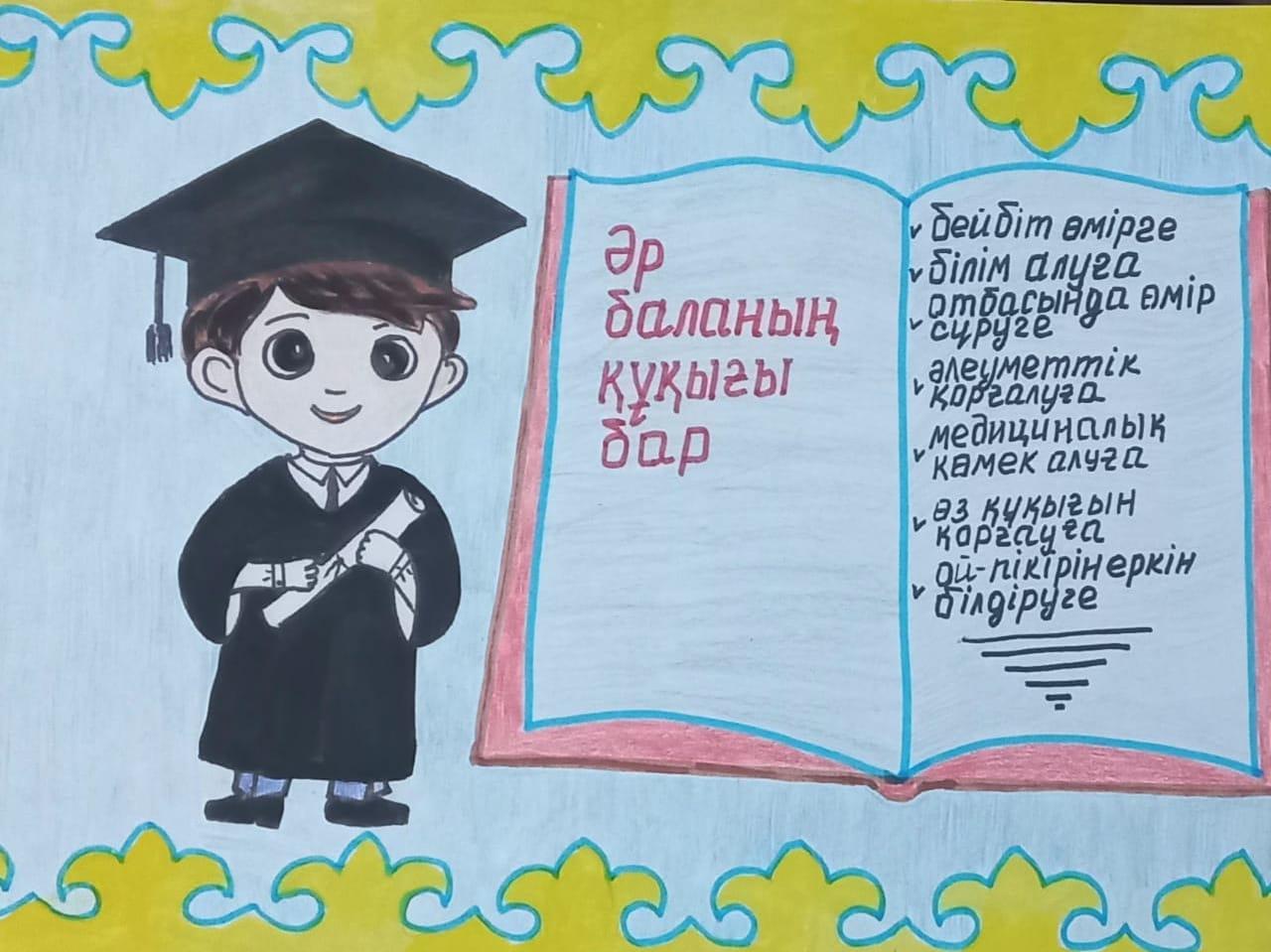 Алматинская область Алатау қаласы Қоянқұс шағын ауданы "№13 орта мектеп" МКМ көркем еңбек пәнінің мұғалімдері Б.Тынбаева мен А.Кусманова мектепішілік оқу-тәрбие жоспарын іске асыру мақсатында 8 сыныптар арасында «Заңды білу заман талабы» тақырыбында сурет көрмесін ұйымдастырды. Мақсаты: Білім алушыларға құқықтық тәрбие беру.
